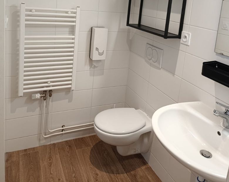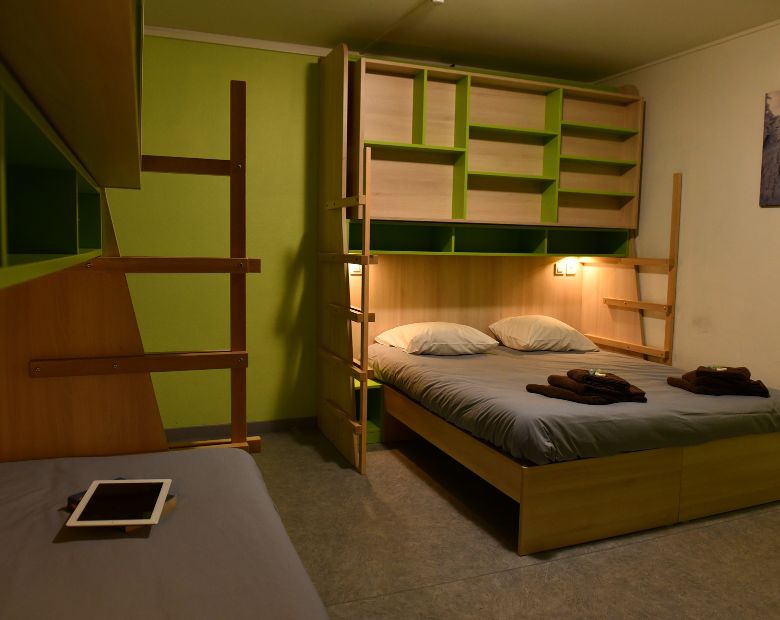 We have 53 rooms from 1 to 6 beds fully modular. 12 rooms are accessible to people with reduced mobility with showers and toilets adapted in the room and an elevator that serves the 3 floors of the building. Each room has a sink, a shower (except for rooms with 3 and 6 beds) and storage space.