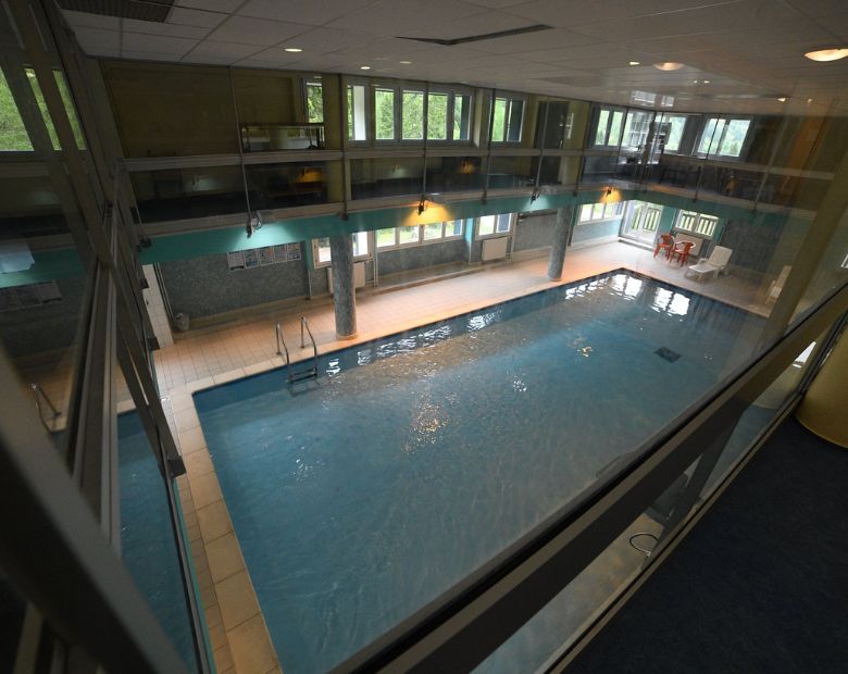 The center is equipped with a bar, a cinema room, an indoor pool heated all year, a relaxation area (sauna, steam room, jacuzzi), a library and several meeting rooms with multiple capacities